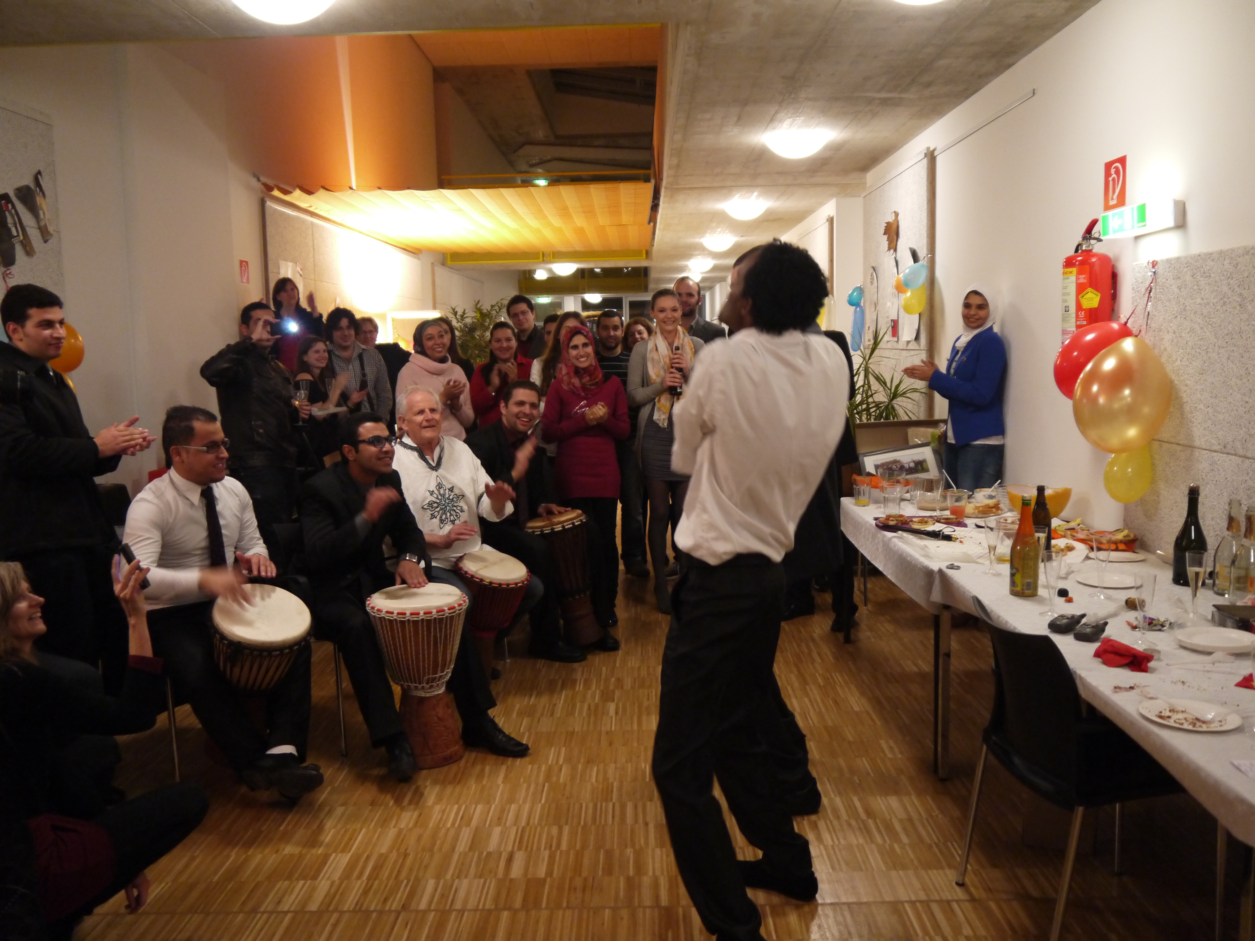 (左為慶祝Bruno教授生日的宴會,右為研究中心的聖誕晚會) |